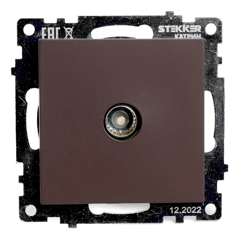 Розетка телевизионная 1-местная STEKKER GLS00-7108-05, артикул 49024, предназначена для подключения телевизоров и другой аудиовизуальной техники. Обеспечивает высококачественный сигнал с импедансом 75 Ом и частотным диапазоном 5-862 МГц. Элегантный шоколадный цвет из серии Катрин гармонично впишется в любой интерьер, а надежная конструкция гарантирует долговечность и безопасность эксплуатации. Идеальное решение для создания комфортной медиа-зоны.