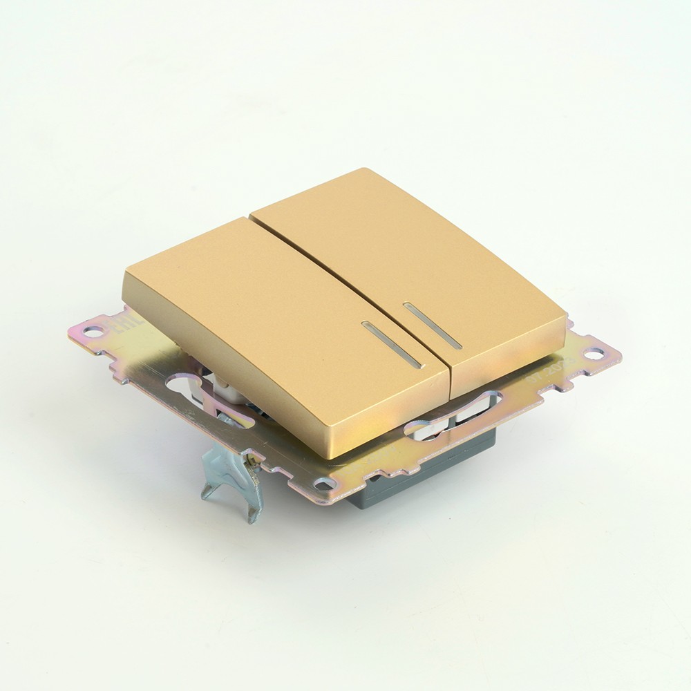 Выключатель 2-клавишный с индикатором STEKKER GLS10-7102-08 из серии Катрин – стильное решение для вашего интерьера. Он выполнен в элегантном золотом цвете и отлично впишется в любой дизайн. Установочный тип – скрытый, с размерами 55x55x35 мм, что обеспечивает компактность и удобство монтажа.