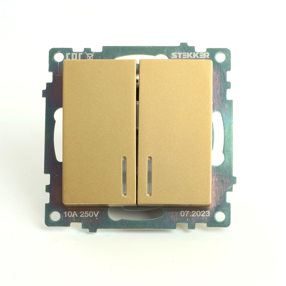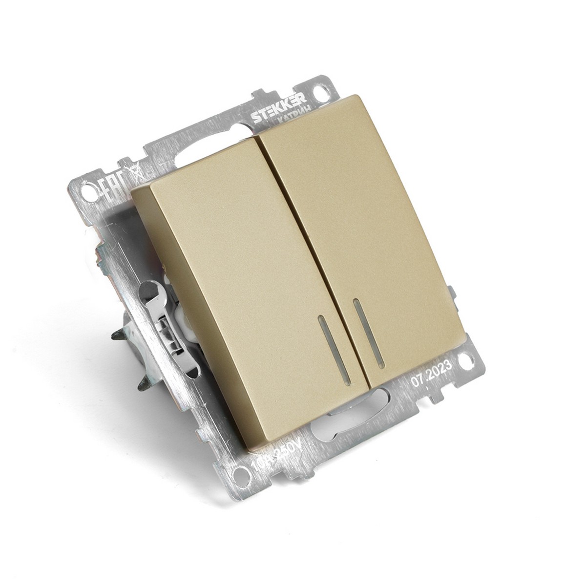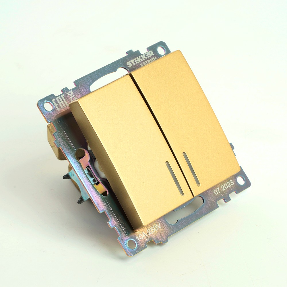 Выключатель 2-клавишный c индикатором STEKKER GLS10-7102-08 10А Катрин золото 49217 по цене 31 руб. с фотографией и техническими характеристиками. Для покупки товара нажмите кнопку "Купить" и перейдите в корзину или позвоните по телефону 8 (495) 585 32 60 или 8 (800) 222 23 53.