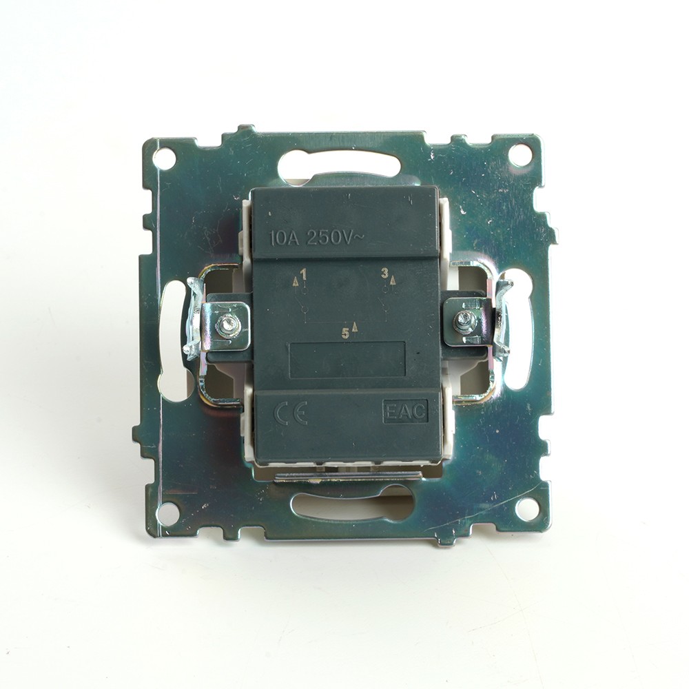 Корпус выключателя изготовлен из качественного поликарбоната, а элементы механизма из прочной латуни, что гарантирует долговечность и надежность в использовании. Устройство работает при номинальном напряжении 250 В и токе до 10 А, что позволяет контролировать электропитание даже для мощных приборов. Защита IP20 подразумевает безопасность использования в помещениях.