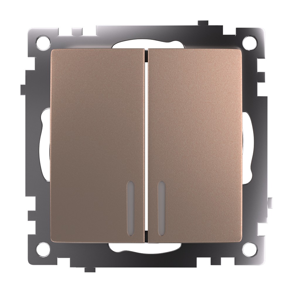 Выключатель двухклавишный STEKKER GLS10-7102-02 серии Катрин – идеальное решение для управления освещением в вашем доме. С его компактными размерами 55*55*35 мм и стильным цветом шампань он легко впишется в любой интерьер. Выключатель выполнен из прочного поликарбоната и латунных элементов, что обеспечивает долговечность и надежность эксплуатации. Подсветка в желтом цвете не только добавляет эстетики, но и удобства в использовании в темное время суток. Устройство предназначено для скрытого монтажа и работает при номинальном напряжении 250 В и токе 10А. Степень защиты IP20 гарантирует безопасность в условиях indoor. С выключателем STEKKER комфорт становится доступным!
