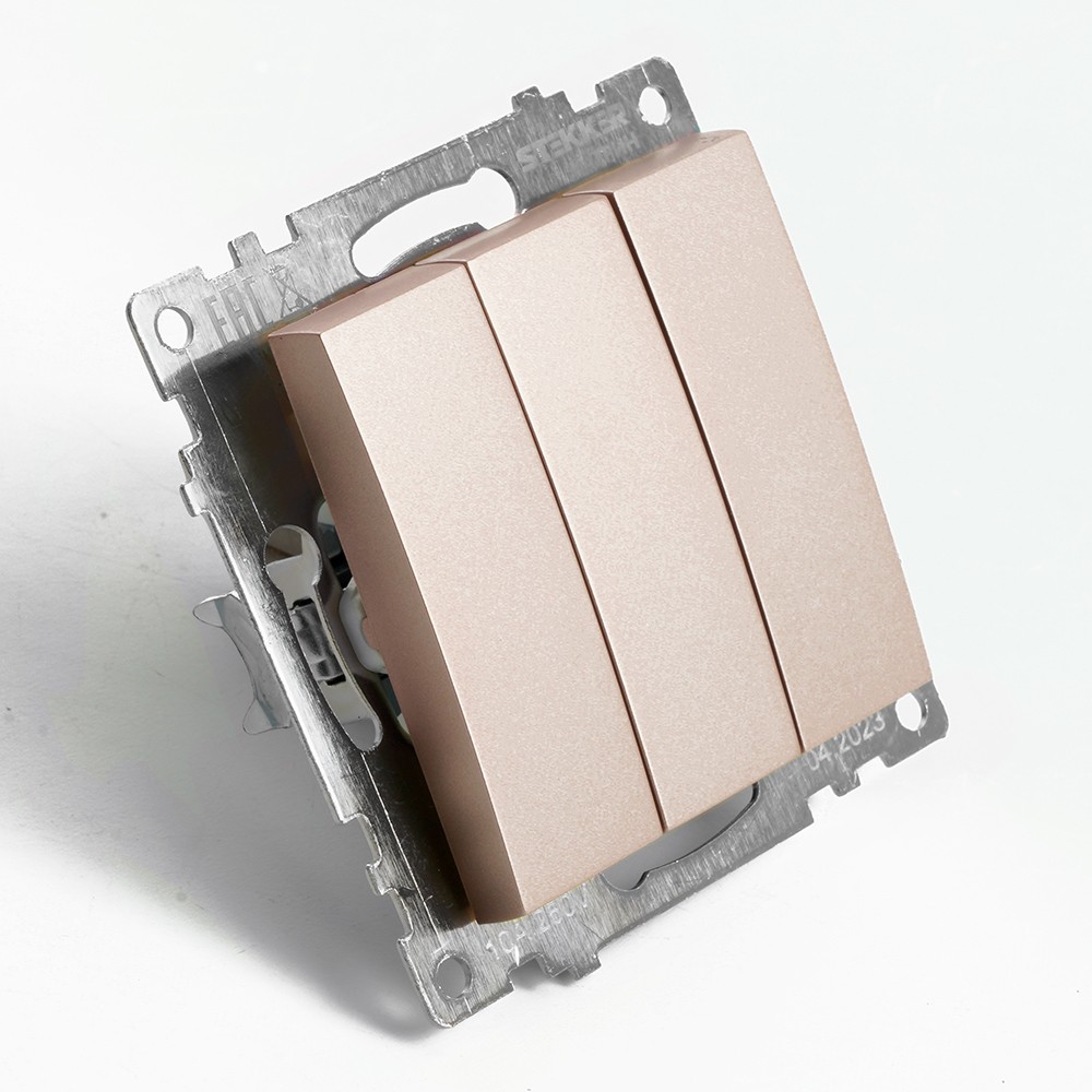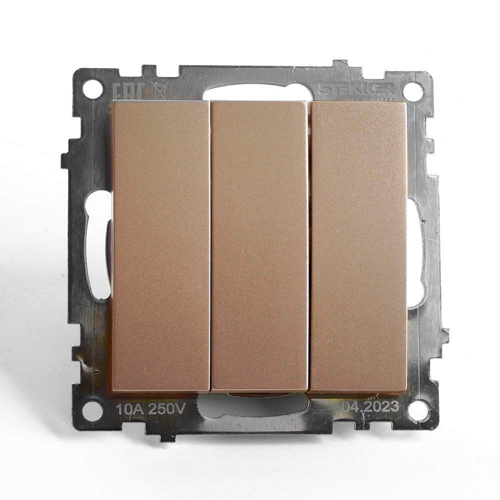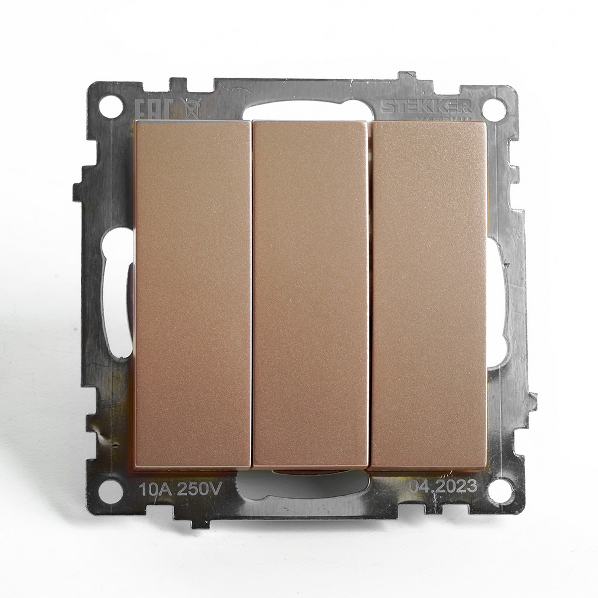 Выключатель 3-клавишный STEKKER GLS10-7108-02 250V 10А Катрин шампань 49174 по цене 137 руб. с фотографией и техническими характеристиками. Для покупки товара нажмите кнопку "Купить" и перейдите в корзину или позвоните по телефону 8 (495) 585 32 60 или 8 (800) 222 23 53.