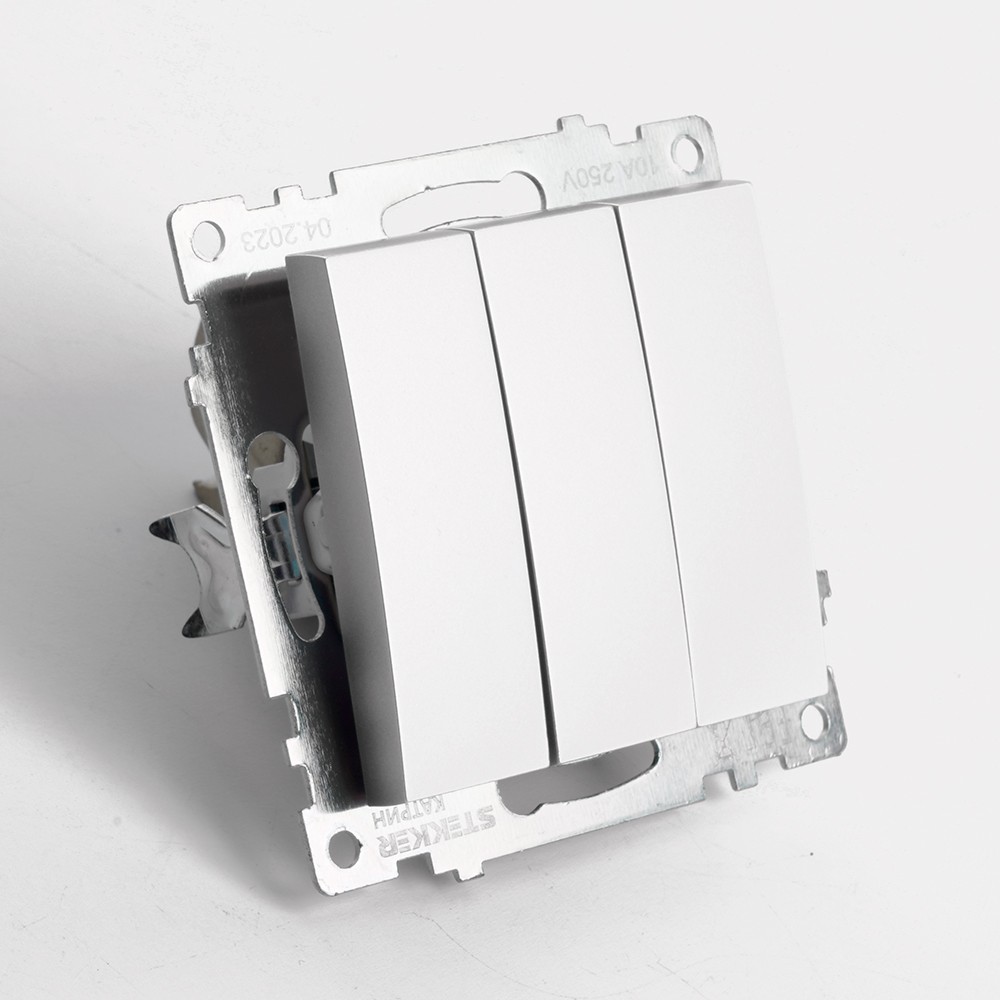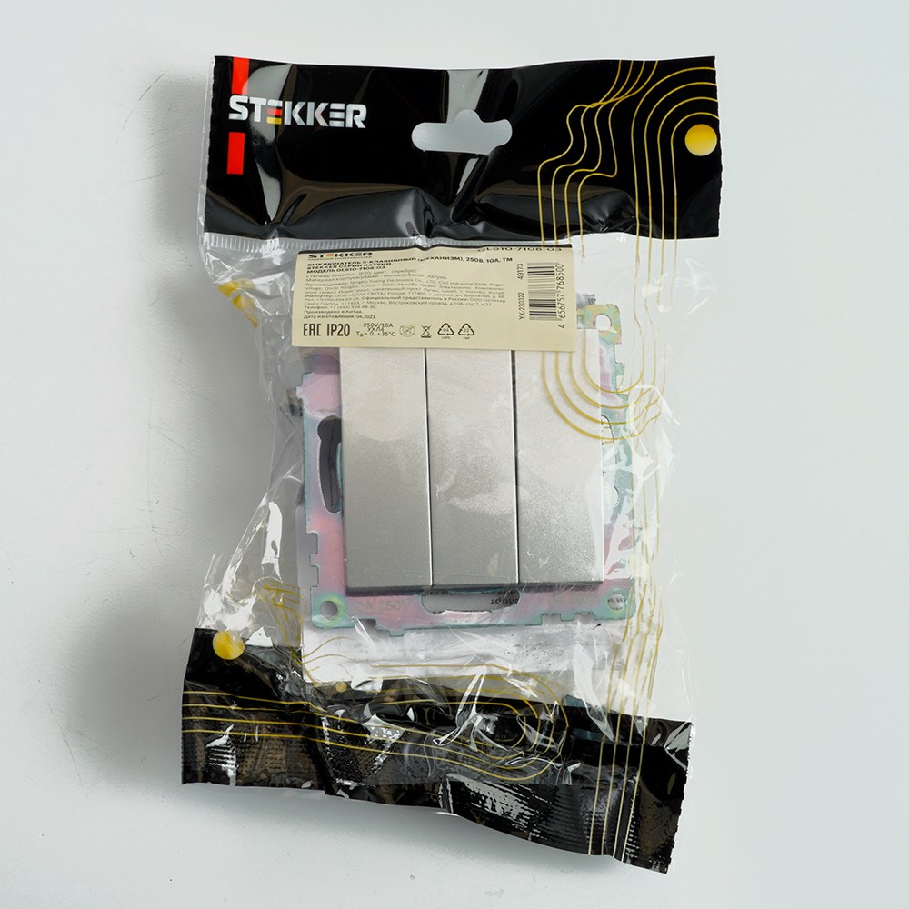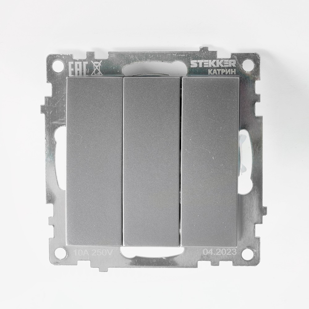 Выключатель 3-клавишный STEKKER GLS10-7108-03 250V 10А Катрин серебро 49173 по цене 137 руб. с фотографией и техническими характеристиками. Для покупки товара нажмите кнопку "Купить" и перейдите в корзину или позвоните по телефону 8 (495) 585 32 60 или 8 (800) 222 23 53.