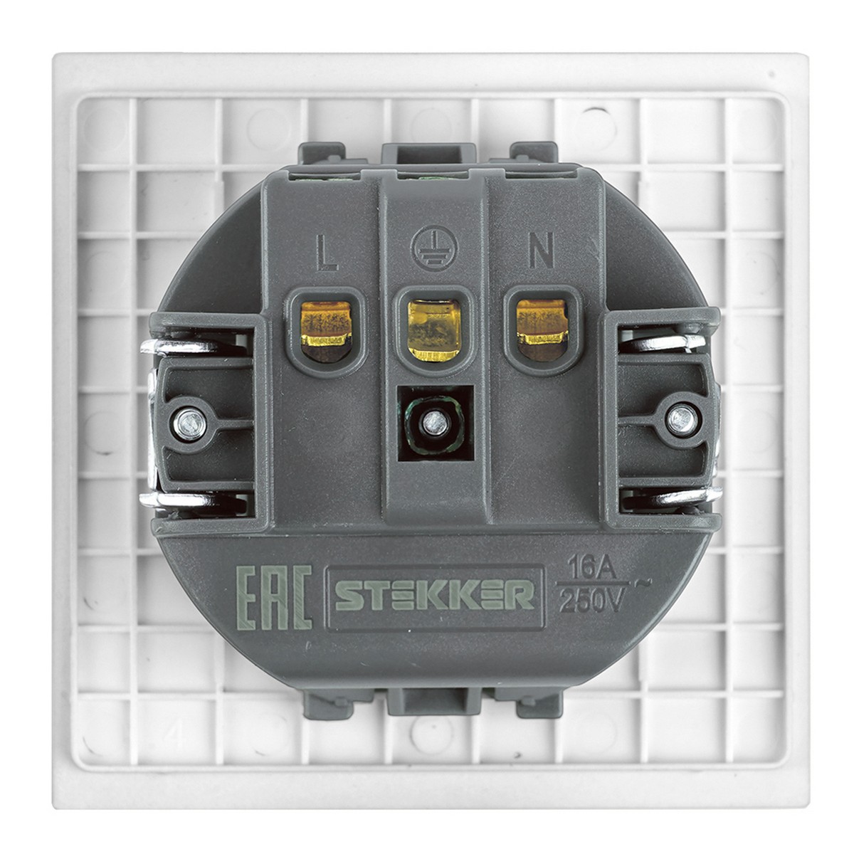 Розетка STEKKER RST16-3110-01 (срок службы 25 лет) на 1 гнездо, -, с заземлением. Материал: поликарбонат, бронза, сталь, цвет белая магнолия, размер 71*71*44,5мм. Номинальное напряжение 250, номинальный ток 16А, диапазон рабочих температур 0..+35°C, 20