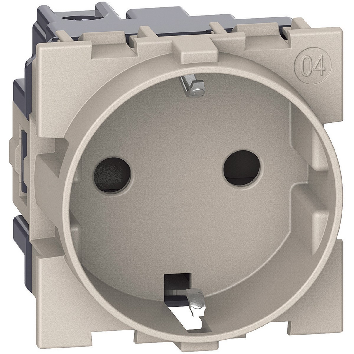 Механизм с быстрозажимными клеммами Systeme Electric серии ArtGallery в цвете песочный розетки одинарной с заземлением и шторками подходит для сетей 250 В, на ток 16 А.