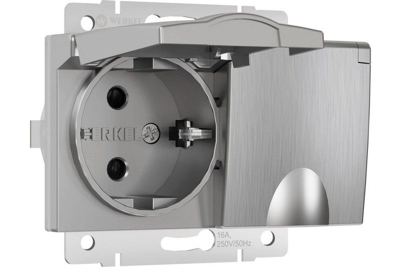 Розетка Werkel двойная влагозащ. с зазем. с защит. крышками и шторками (серебряный рифленый) W117220 по цене 1 680 руб. с фотографией и техническими характеристиками. Для покупки товара нажмите кнопку "Купить" и перейдите в корзину или позвоните по телефону 8 (495) 585 32 60 или 8 (800) 222 23 53.