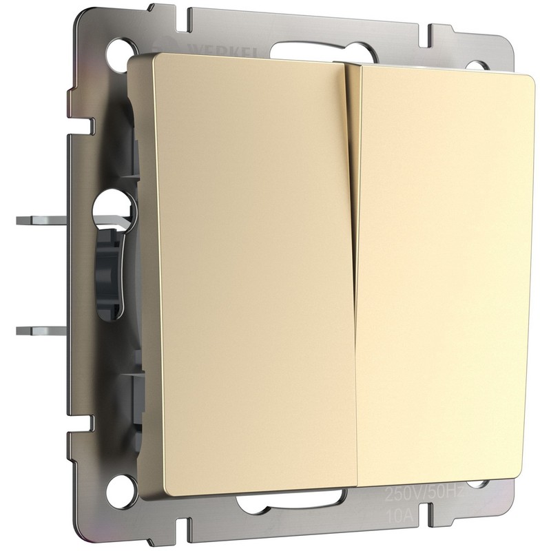 Короткий и тихий ход клавиши добавляет комфорт в использование, а стильный цвет шампаня прекрасно вписывается в любой интерьер. Werkel – это выбор для тех, кто ценит надежность и эстетику в электрооборудовании.