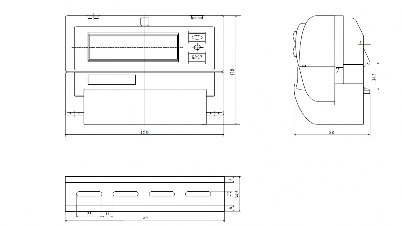 крепление на DIN рейку; (счетчик комплектуется переходной планкой для крепления на место индукционных счетчиков).
