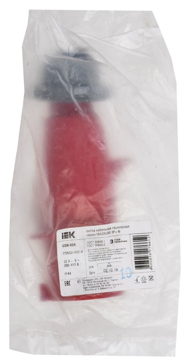 Вилка кабельная IEK ССИ-024 32А 3Р+РЕ IP44 MAGNUM PSN02-032-4 по цене 736 руб. с фотографией и техническими характеристиками. Для покупки товара нажмите кнопку "Купить" и перейдите в корзину или позвоните по телефону 8 (495) 585 32 60 или 8 (800) 222 23 53.