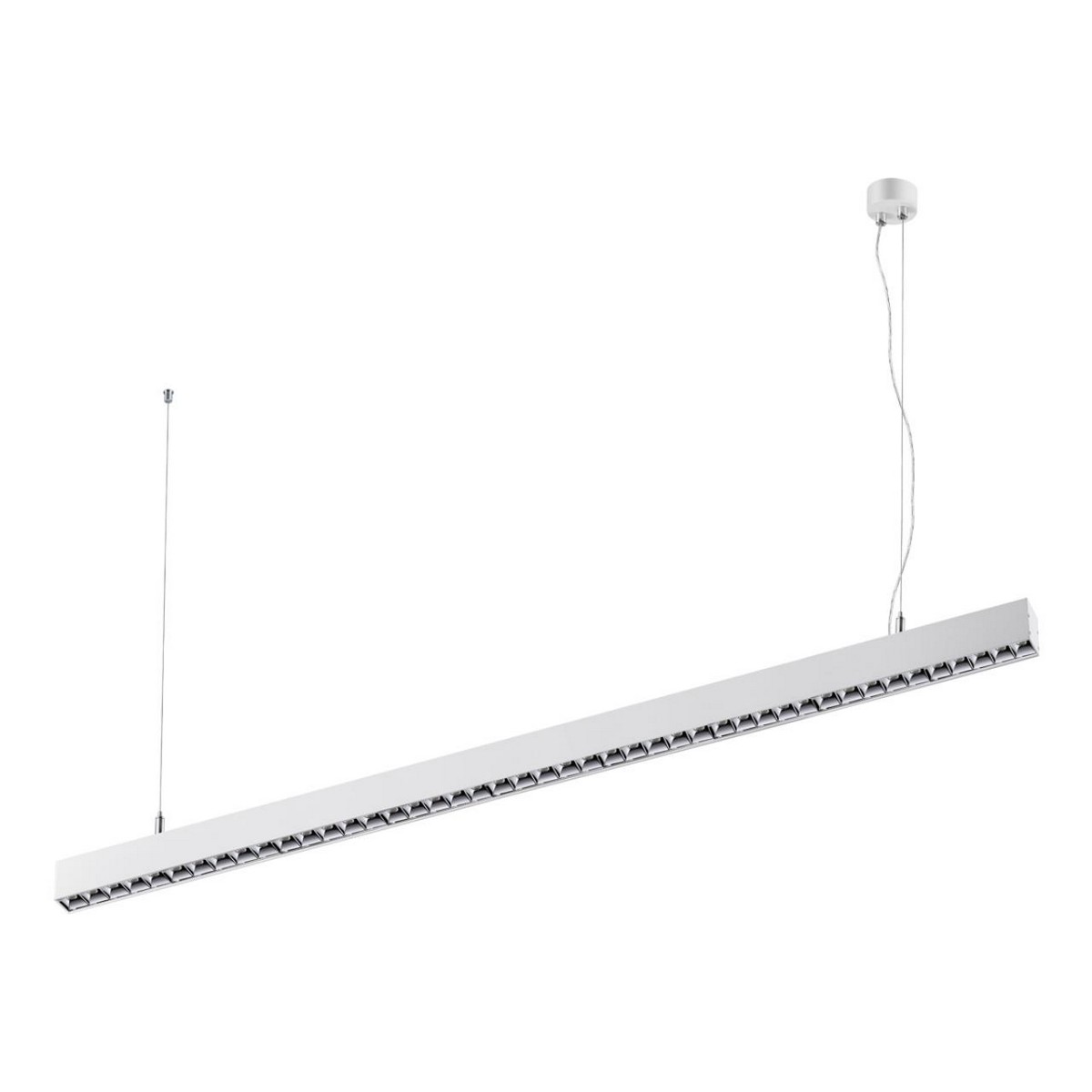 Благодаря подвесам длиной 1,2 м, установка светильника не требует дополнительных усилий — все необходимое уже входит в комплект. Дизайн выполнен в современном белом цвете, что позволяет гармонично вписать его в любой интерьер. Светильник излучает нейтрально-белый свет, создавая приятную атмосферу для работы или отдыха.