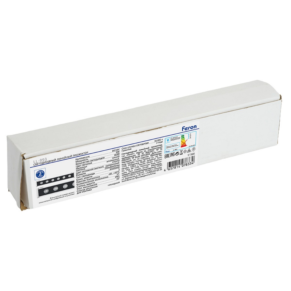 эксплуатации. Линейный архитектурный светильник светодиодный, накладной (ДБУ) FERON LL-893, 6W, (синий), DC24V IP65, угол рассеивания 30°, 6LED*3030SMD, класс защиты 3, раб.t -40°C - +60°C, цвет серебристый, корпус алюминий, стекло, 250*40*25мм,