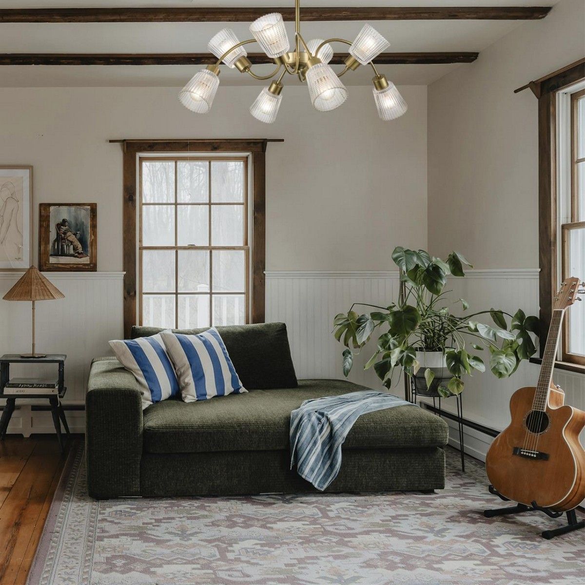 Серия светильников IMANA отличается оригинальным расположением рожков. Свет от такой люстры направлен вверх и вниз, освещая каждый уголок комнаты. Люстра идеально подходит для помещений с низкими потолками. Стеклянные плафоны хорошо закрывают лампу с колбой шарик.