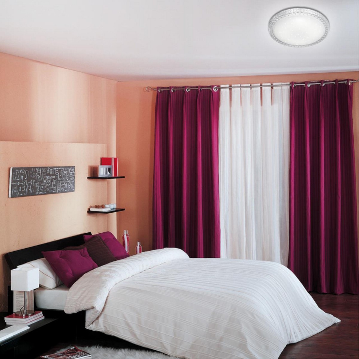 Светильник 2036/EL линии BRISA состоит из металлического основания (базы) и пластикового рассеивателя. Материал рассеивателя - высококачественный акрил белого цвета с глянцевой поверхностью, обеспечивающий светильнику равномерное рассеивание и хорошее светопропускание. Форма плафона: круглая, декорирована рисунком в виде прозрачных точек и рельефным ободом, которые придают включенному светильнику красивый эффект "звездного мерцания" и переливания. Степень защиты IP43 позволяет использовать светильник в определенных зонах влажных помещений. В комплект входит заменяемый LED модуль с линзами, мощностью 72Вт, которая соответствует лампе накаливания 730Вт. А также пульт ДУ, с помощью которого осуществляется плавное изменение цветовой температуры 3000-6300К, изменение яркости, переход в режим переключения теплого/белого/холодного/ночного света. Светильник имеет функцию "память".