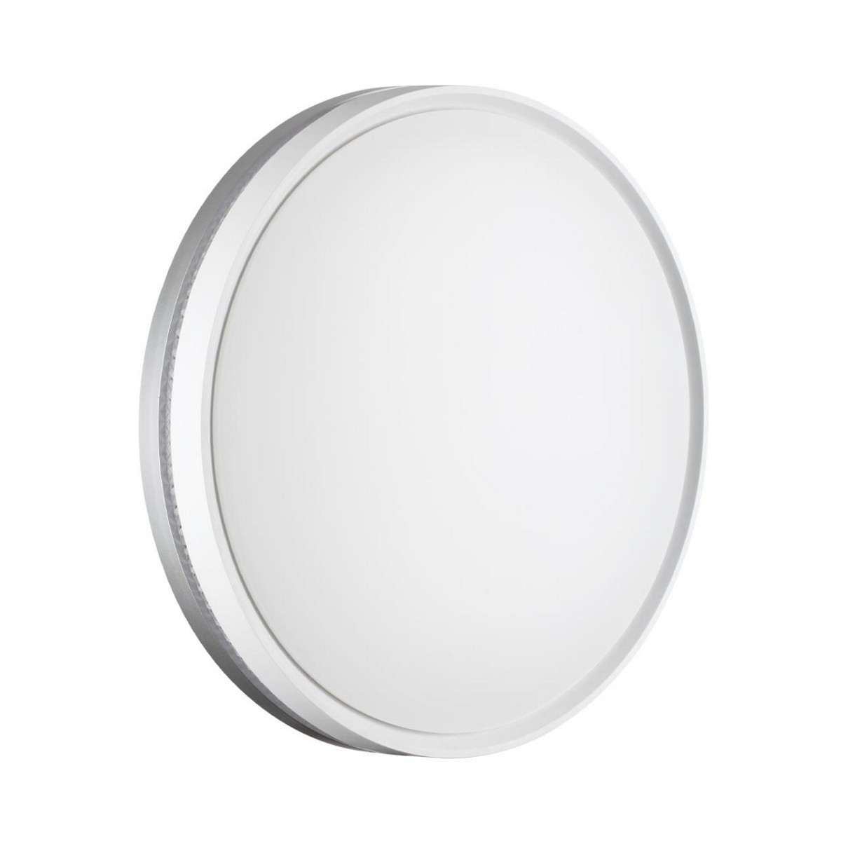 Светильник 7670/DL линии NOHAVA GREY состоит из металлического основания (базы) и пластикового рассеивателя. Материал рассеивателя - высококачественный пластик марки PMMA 2.0 белого цвета с матовой поверхностью. Пластик обеспечивает светильнику равномерное рассеивание и хорошее светопропускание. Форма плафона: круглая, декорирована ободом из пластика светло-серого цвета у основания светильники и белого цвета у внешнего края. Обод украшен прозрачной декоративной вставкой "под хрусталь". Степень защиты IP43 позволяет использовать светильник в определенных зонах влажных помещений. В комплект входит заменяемый LED модуль с линзами, мощностью 48Вт, которая соответствует лампе накаливания 460Вт. Источник света имеет комфортную цветовую температуру 4000К (белый свет).