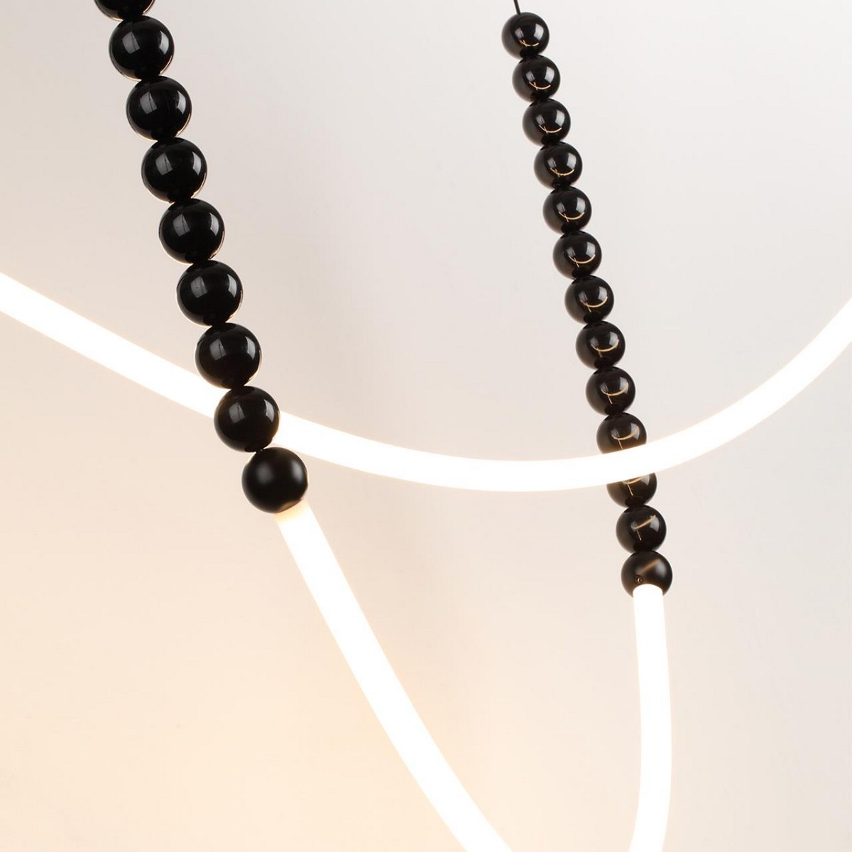 Monella — большая линия светильников оригинальной формы в легком игривом дизайне с использованием черных полированных шариков из акрила. В светильнике используются необычные фиксаторы к потолку в виде россыпи маленьких металлических шариков, которые можно расположить на любом удалении от центра светильника и, таким образом, создать свою форму.
