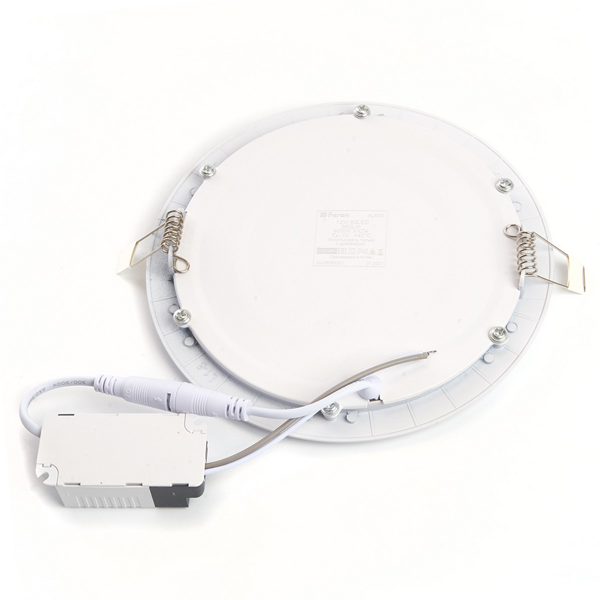 Светильник встраиваемый светодиодный, ультратонкий (ДВО) FERON AL500, 12W 4000К (белый), 175-265V, 960Lm, IP40, угол рассеивания 120°, цвет белый, корпус алюминий, рассеиватель матовый акриловый полимер, 170*170*18 мм, монтажн.отв. 155*155 мм.