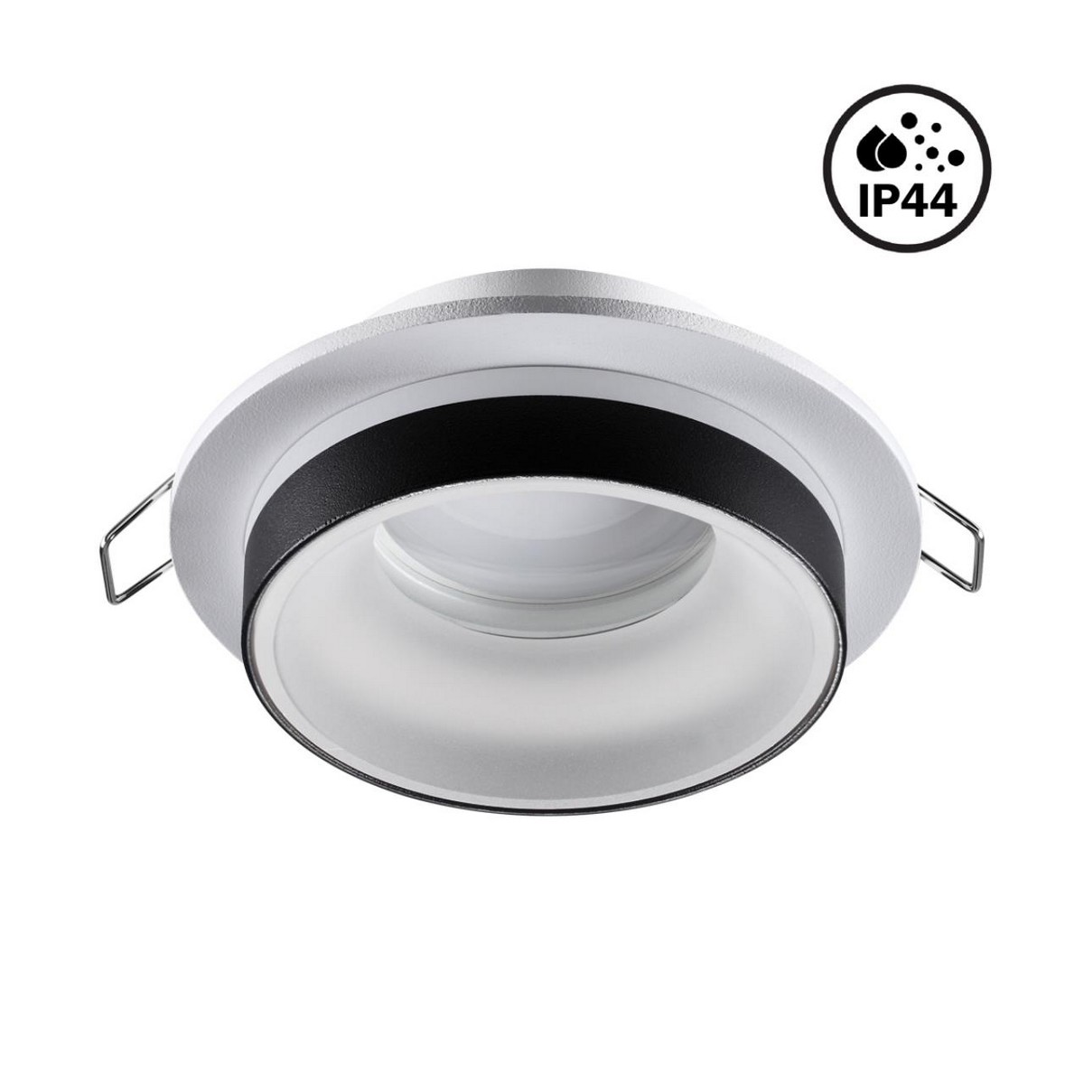 Встраиваемый неповоротный светильник с повышенной степенью пылевлагозащиты (IP44) подходит для установки во влажные помещения. Лампа в комплект не входит.