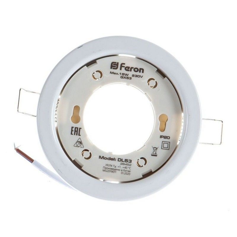 Светильник встраиваемый Feron DL53 потолочный GX53 белый 41205 по цене 84 руб. с фотографией и техническими характеристиками. Для покупки товара нажмите кнопку "Купить" и перейдите в корзину или позвоните по телефону 8 (495) 585 32 60 или 8 (800) 222 23 53.