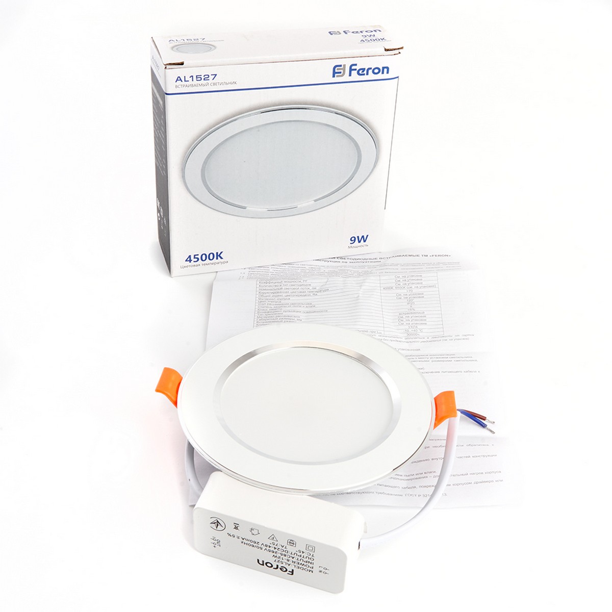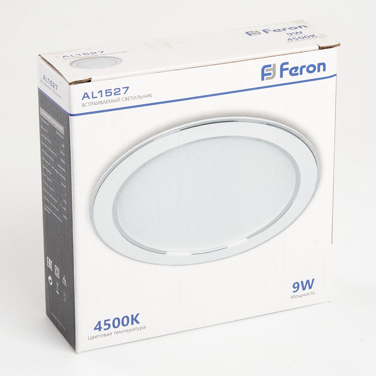 Светильник встраиваемый светодиодный Feron AL1527 9W 4500K белый 41196 по цене 484 руб. с фотографией и техническими характеристиками. Для покупки товара нажмите кнопку "Купить" и перейдите в корзину или позвоните по телефону 8 (495) 585 32 60 или 8 (800) 222 23 53.