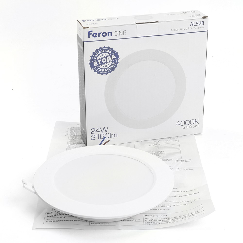 Светодиодный светильник Feron.ONE AL528 встраиваемый 24W 4000K белый 48875 по цене 311 руб. с фотографией и техническими характеристиками. Для покупки товара нажмите кнопку "Купить" и перейдите в корзину или позвоните по телефону 8 (495) 585 32 60 или 8 (800) 222 23 53.