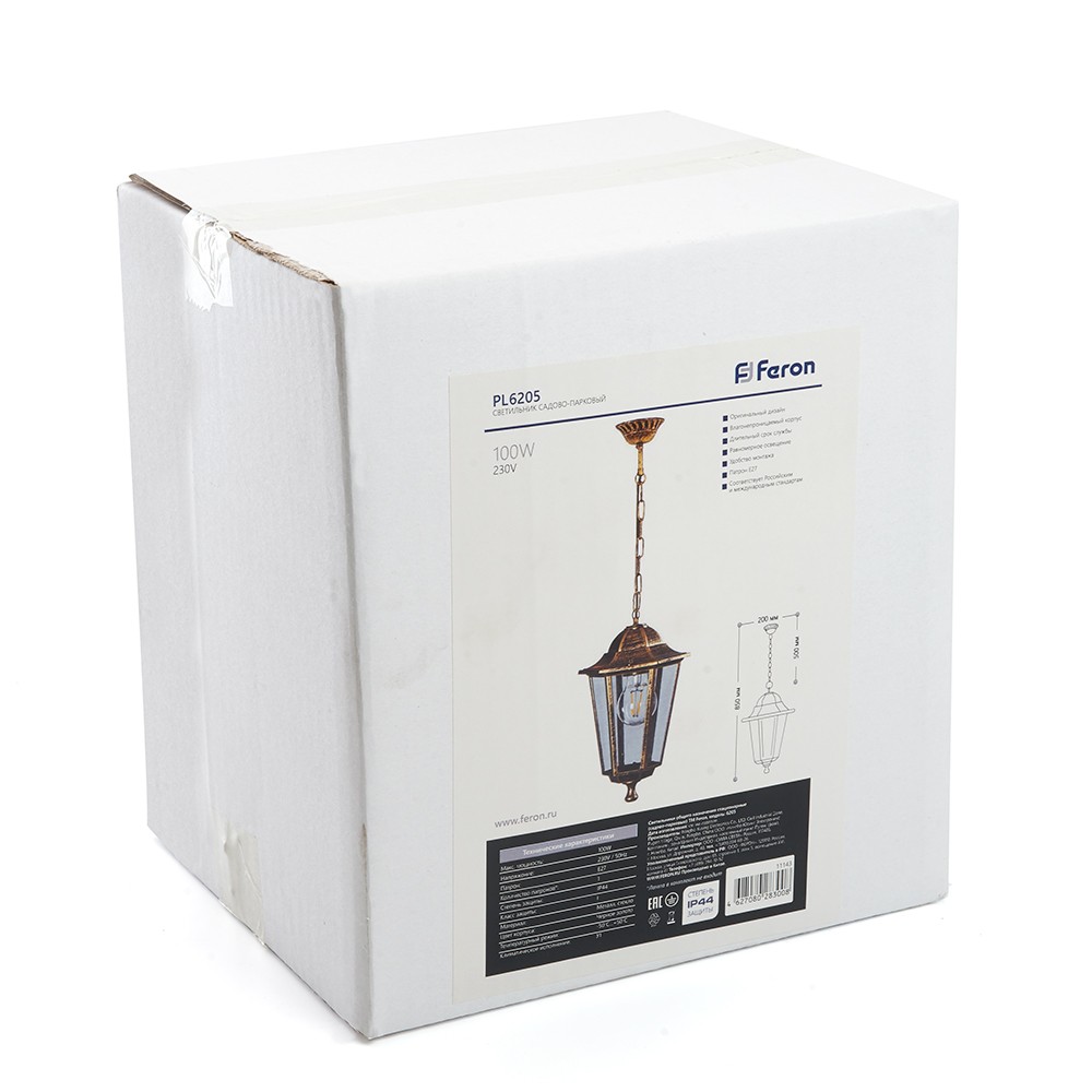 Уличный светильник Feron 6205 шестигранный на цепочке 100W E27 230V, черное золото 11143 по цене 2 385 руб. с фотографией и техническими характеристиками. Для покупки товара нажмите кнопку "Купить" и перейдите в корзину или позвоните по телефону 8 (495) 585 32 60 или 8 (800) 222 23 53.