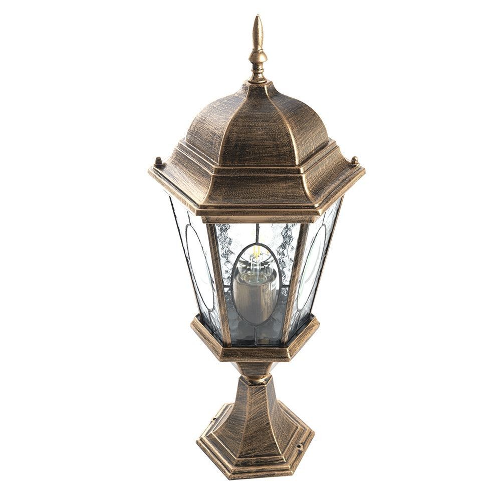 Изготовленный из высококачественных, коррозионно-устойчивых материалов (металл и стекло), светильник гарантирует долговечность и надежность в эксплуатации. Размеры устройства составляют 185×185×440 мм, что обеспечивает заметное, но не навязчивое присутствие. Модель поддерживает напряжение 230V и соответствует стандарту IP44, что делает ее стойкой к пыли и брызгам, позволяя использование во влажных и пыльных условиях без ущерба для работы.