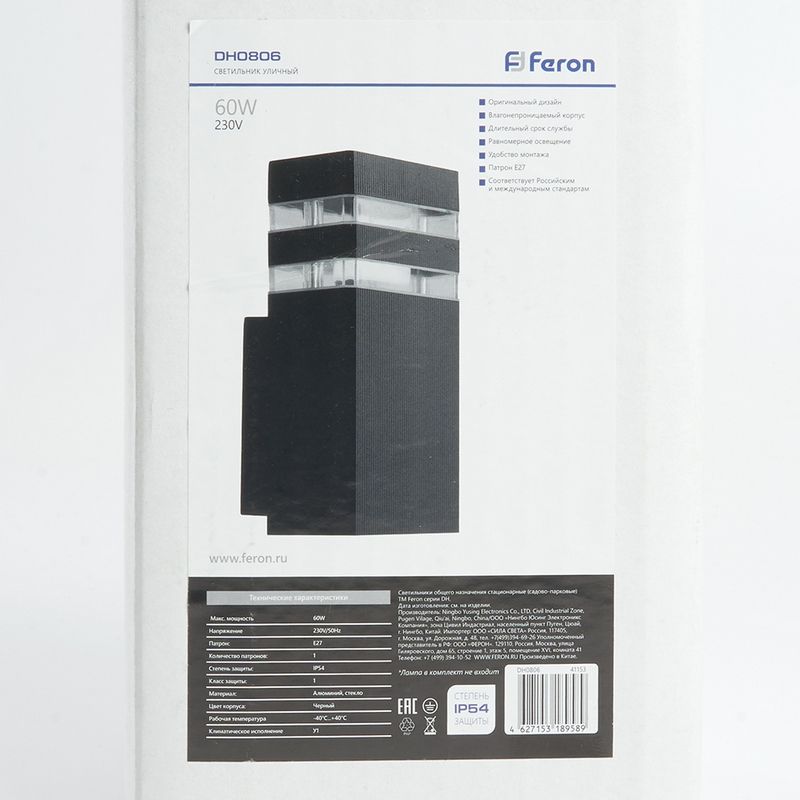 Размеры светильника составляют 110х65х195 мм, что обеспечивает удобство установки и компактное размещение. Выбирая светильник Feron DH0806, вы получаете не только функциональный, но и стильный акцент для вашего экстерьера.