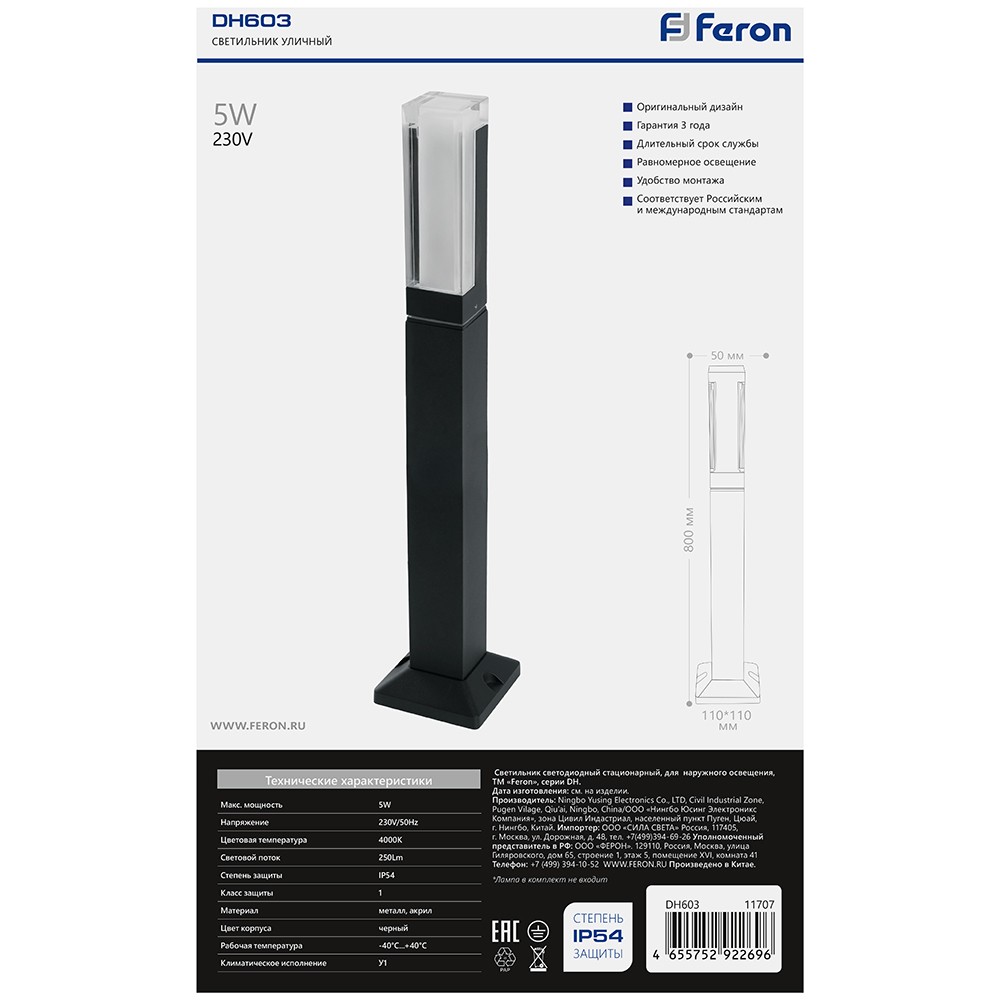 Светильник уличный светодиодный Feron DH603 5W 250Lm 4000K черный 11707 по цене 6 676 руб. с фотографией и техническими характеристиками. Для покупки товара нажмите кнопку "Купить" и перейдите в корзину или позвоните по телефону 8 (495) 585 32 60 или 8 (800) 222 23 53.