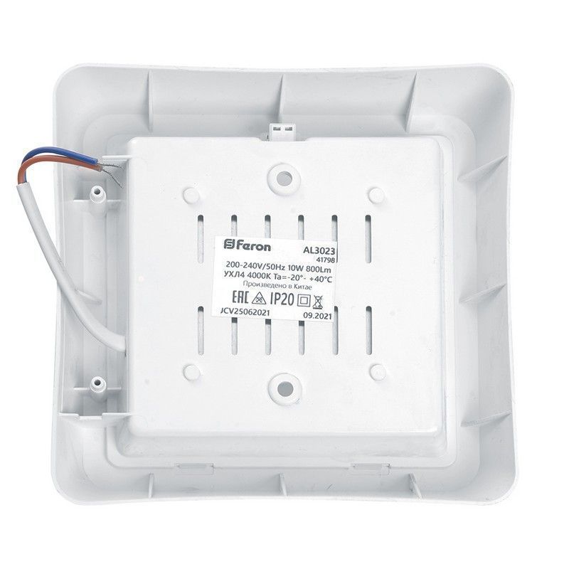 Светильник светодиодный с ИК-датчиком Feron AL3023 – идеальное решение для освещения вашего пространства. Этот настенно-потолочный светильник мощностью 10 Вт и световым потоком 800 Лм обеспечивает яркое нейтральное белое свечение с температурой 4000K. Заметный квадратный дизайн и белый цвет корпуса позволяют гармонично вписать его в интерьер прихожей, коридора или зала.