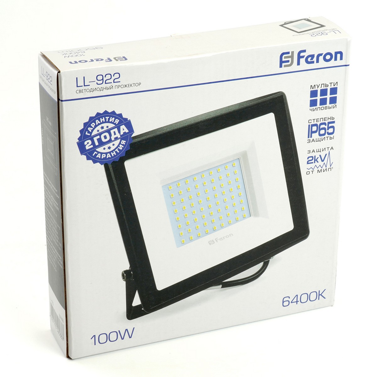 Светодиодный прожектор Feron LL-922 IP65 100W Черный 6400K 32103 по цене 790 руб. с фотографией и техническими характеристиками. Для покупки товара нажмите кнопку "Купить" и перейдите в корзину или позвоните по телефону 8 (495) 585 32 60 или 8 (800) 222 23 53.