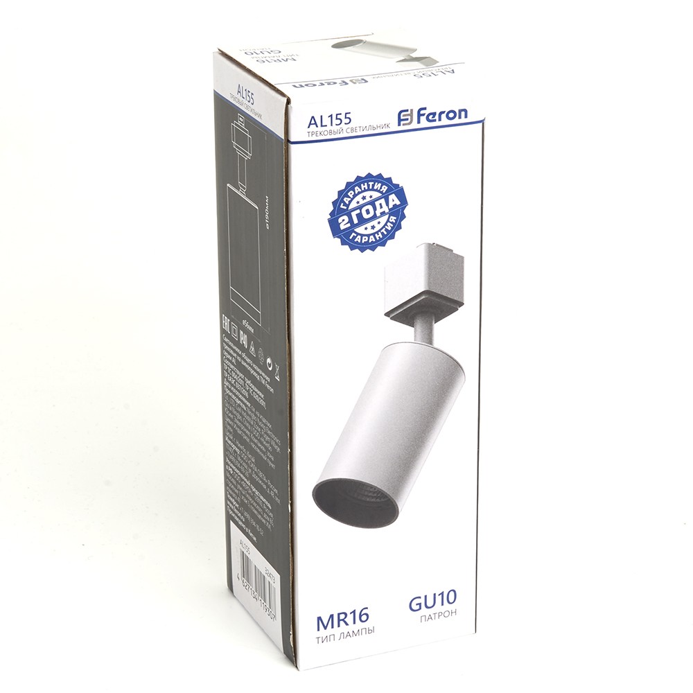 Трековые светильники AL155 TM FERON артикул 32473 предназначены для использования с лампами типоразмера MR16 и цоколем GU10.