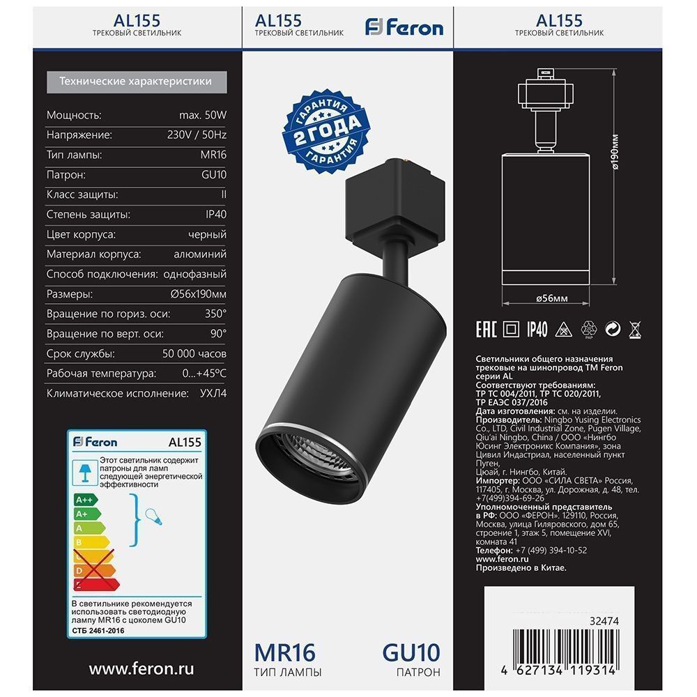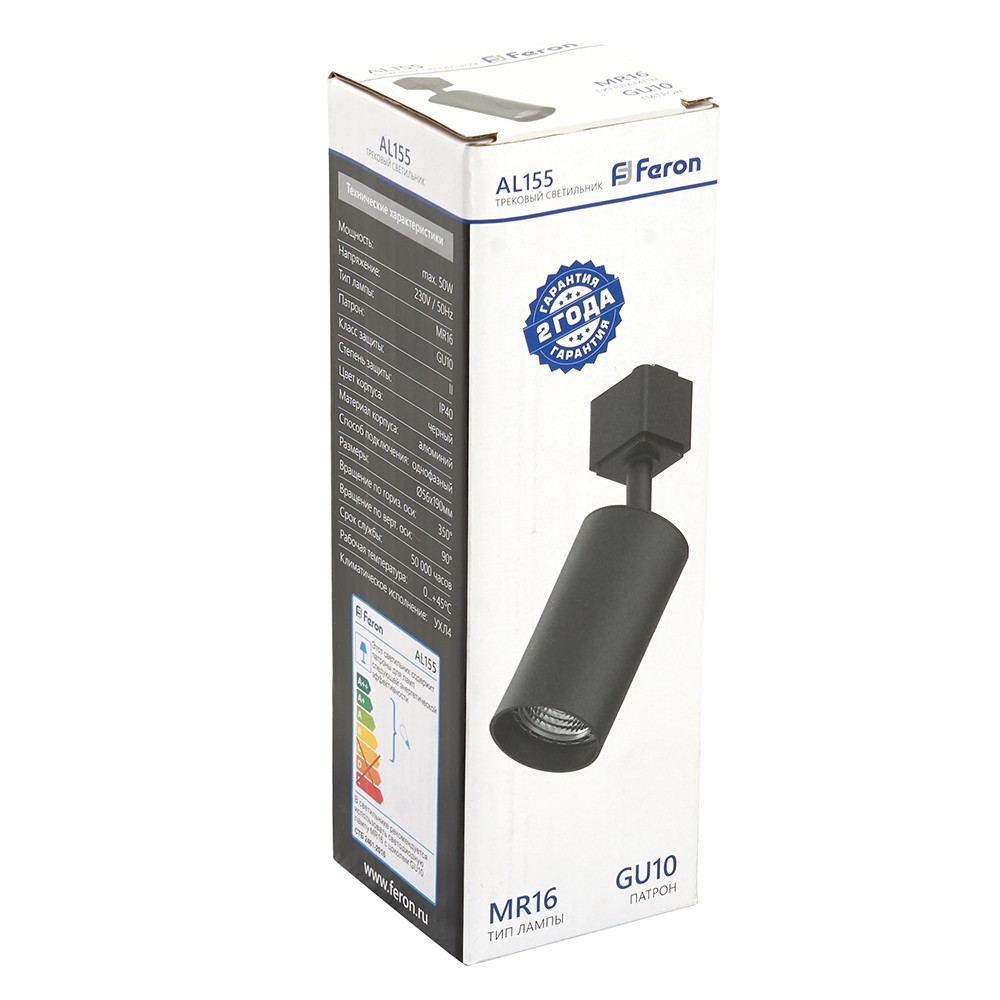 Светильник Feron AL155 трековый однофазный на шинопровод под лампу GU10 черный 32474 по цене 327 руб. с фотографией и техническими характеристиками. Для покупки товара нажмите кнопку "Купить" и перейдите в корзину или позвоните по телефону 8 (495) 585 32 60 или 8 (800) 222 23 53.