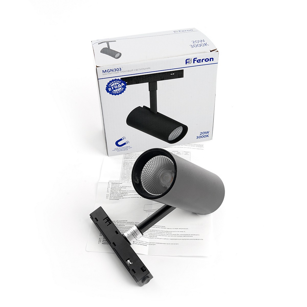 Трековый светильник можно двигать по шинопроводу в любое место трека, есть дополнительные регулировки, можно создавать зоналное освещение. Подходит для основного и декоративного освещения. Модель MGN303 от производителя Feron с цветом корпуса Черный подходят для следующего типа трекового освещения - Магнитные трековые системы в качестве источника света используется Встроенные диоды LED. Светильник поможет создать качественное освещение в любом интерьере Светильник трековый на шинопровод, - (ДПО) FERON MGN303, 20W, 3000К (белый теплый), 48V, 1800Lm, цвет черный, корпус алюминий, рассеиватель поликарбонат, вращение →350°/↓90°, 168*160*70 мм