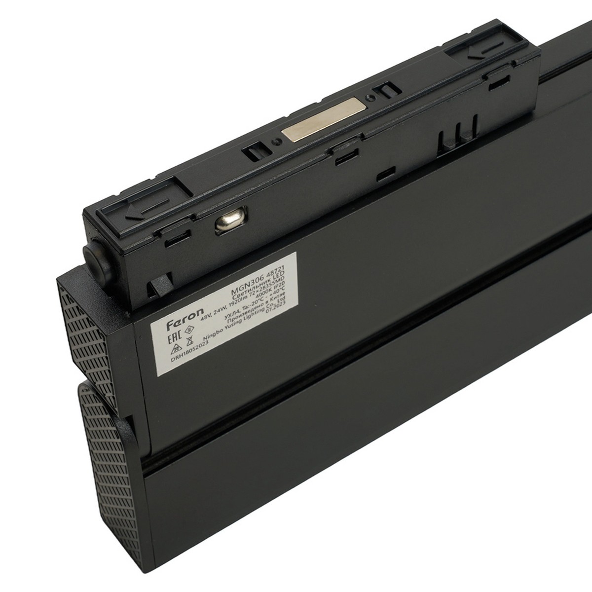 Светильник светодиодный Feron MGN306 — идеальное решение для создания универсального освещения в различных интерьерах. Этот трековый светильник мощностью 24W выделяется стильным черным корпусом из алюминия и представляет собой идеальный элемент для магнитных трековых систем. С цветовой температурой 4000K, он обеспечивает нейтральный белый свет, создавая комфортную атмосферу. Особенностью модели является возможность передвижения по шинопроводу, что позволяет легко настраивать освещение в зависимости от потребностей. Регулируемый угол наклона до 90° способствует зональному освещению, что делает MGN306 подходящим как для основного, так и декоративного освещения. С яркостью 1920Lm и габаритами 438*22*105 мм, этот светильник сочетает в себе функциональность и современный дизайн, что делает его отличным выбором для офисов, торговых площадей и жилых помещений.