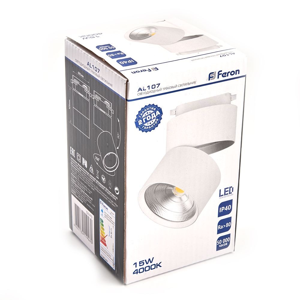 Светодиодный светильник Feron AL107 трековый на шинопровод 15W 4000K белый 32475 по цене 1 382 руб. с фотографией и техническими характеристиками. Для покупки товара нажмите кнопку "Купить" и перейдите в корзину или позвоните по телефону 8 (495) 585 32 60 или 8 (800) 222 23 53.