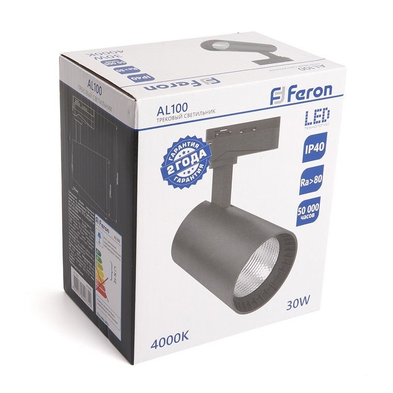 Светодиодный светильник Feron AL100 трековый на шинопровод 30W 4000K черный 41608 по цене 625 руб. с фотографией и техническими характеристиками. Для покупки товара нажмите кнопку "Купить" и перейдите в корзину или позвоните по телефону 8 (495) 585 32 60 или 8 (800) 222 23 53.