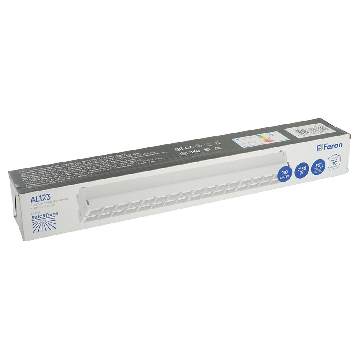 Светодиодный светильник Feron AL123 трековый на шинопровод 2*30W 4000K 60 градусов белый 48925 по цене 3 864 руб. с фотографией и техническими характеристиками. Для покупки товара нажмите кнопку "Купить" и перейдите в корзину или позвоните по телефону 8 (495) 585 32 60 или 8 (800) 222 23 53.