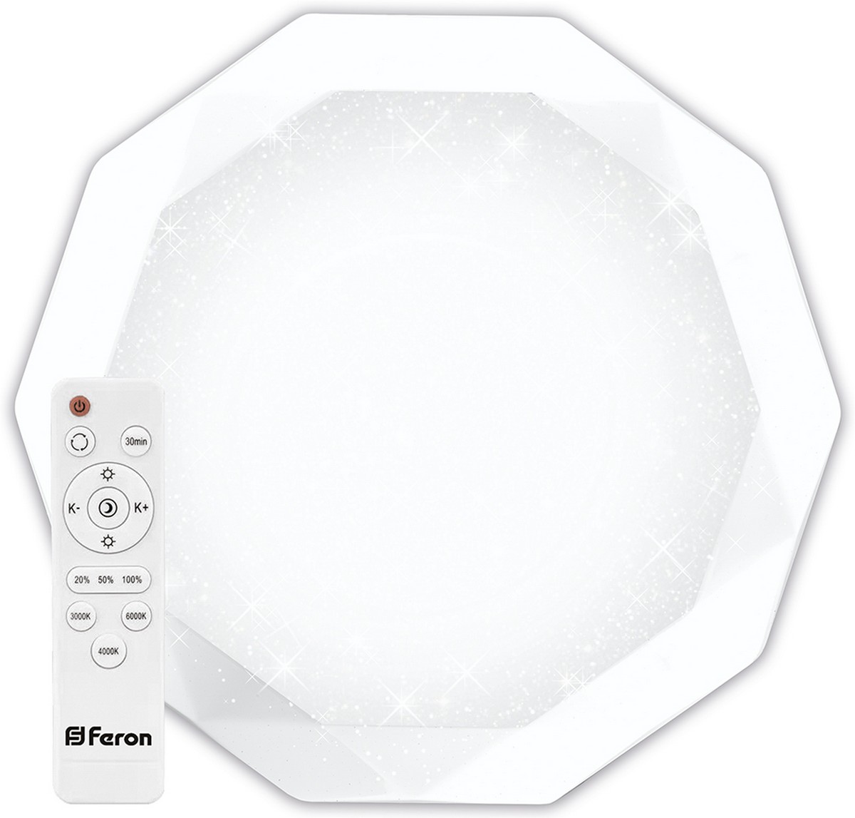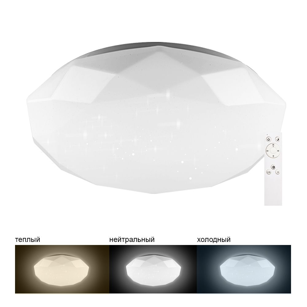 Светильник накладной светодиодный, потолочный управляемый (ДПО) FERON AL5200, 60W, 3000К-6500K (теплый-белый-дневной), 230V, 5000Lm, IP20, угол рассеивания 120°, цвет белый, корпус штампованная сталь, рассеиватель матовый пластик, серия "звездное небо", 450*450*85