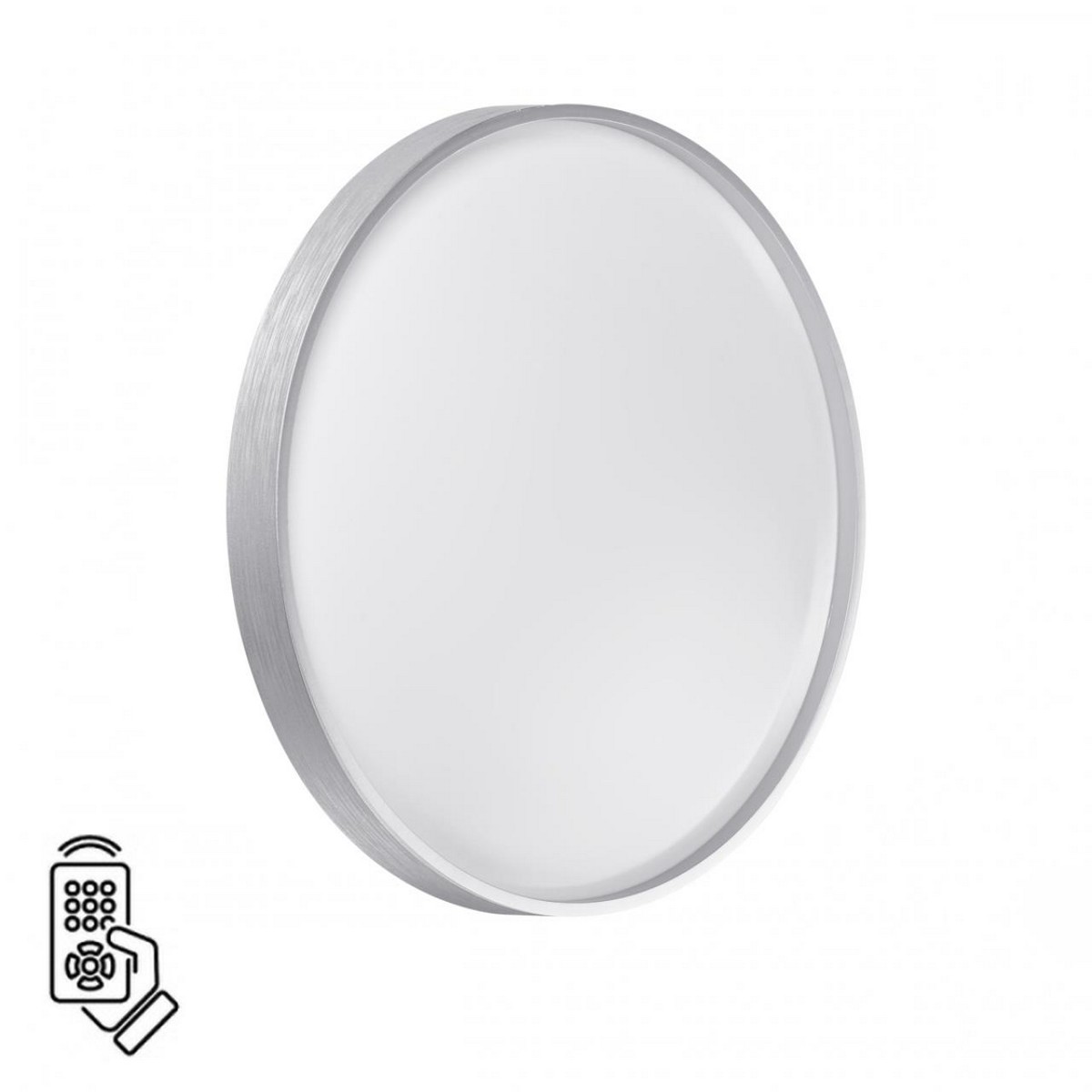 Светильник 7784/DL линии GABY состоит из металлического основания (базы) и пластикового рассеивателя. Материал рассеивателя - высококачественный пластик марки PMMA 2.0 белого цвета с матовой поверхностью, обеспечивающий светильнику равномерное рассеивание и хорошее светопропускание. Форма плафона: круглая, декорирована ободом из пластика, цвет сатинированное серебро, имитирующее металл. Степень защиты IP43 позволяет использовать светильник в определенных зонах влажных помещений. В комплект входит заменяемый LED модуль с линзами, мощностью 48Вт, которая соответствует лампе накаливания 440Вт. А также пульт ДУ, с помощью которого осуществляется плавное изменение цветовой температуры 3000-6000К, изменение яркости, переход в режим переключения теплого/белого/холодного/ночного света. Светильник имеет функцию "память".