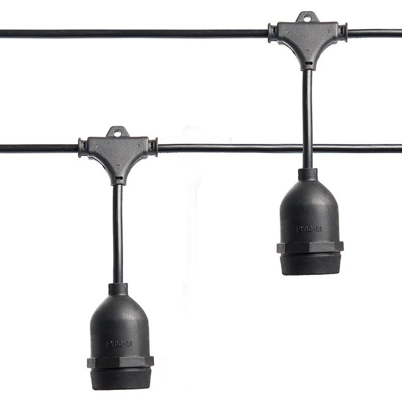 Гирлянда "Белт-лайт" FERON 29885, 10м+3м сетевой шнур, цвет черный, патрон E27*20, шаг 50см, 230ВV/50Гц, 16А, IP65, max 40W, сечение 2*0,5мм², материал: каучук,медь,ПВХ,латунь