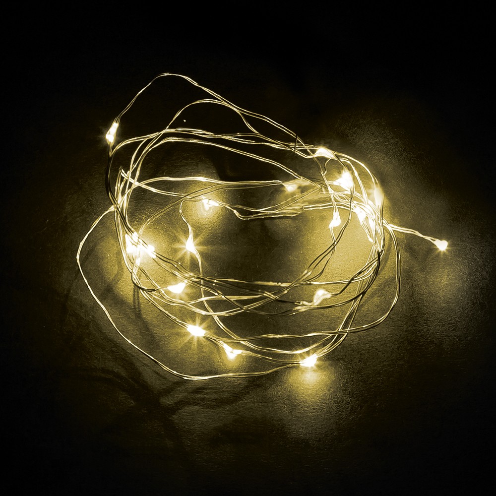 Гирлянда линейная от батареек FERON CL570, 20LED, 2700К (теплый белый), статичная (постоянного свечения), 2м+0,5м прозрачный шнур, расстояние между светодиодами 10см, IP20, 1,2W, на батарейках 2*AA, батарейки отсутствуют в комплекте, последовательное подключение - НЕТ