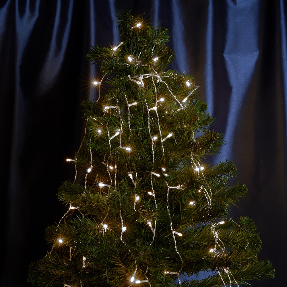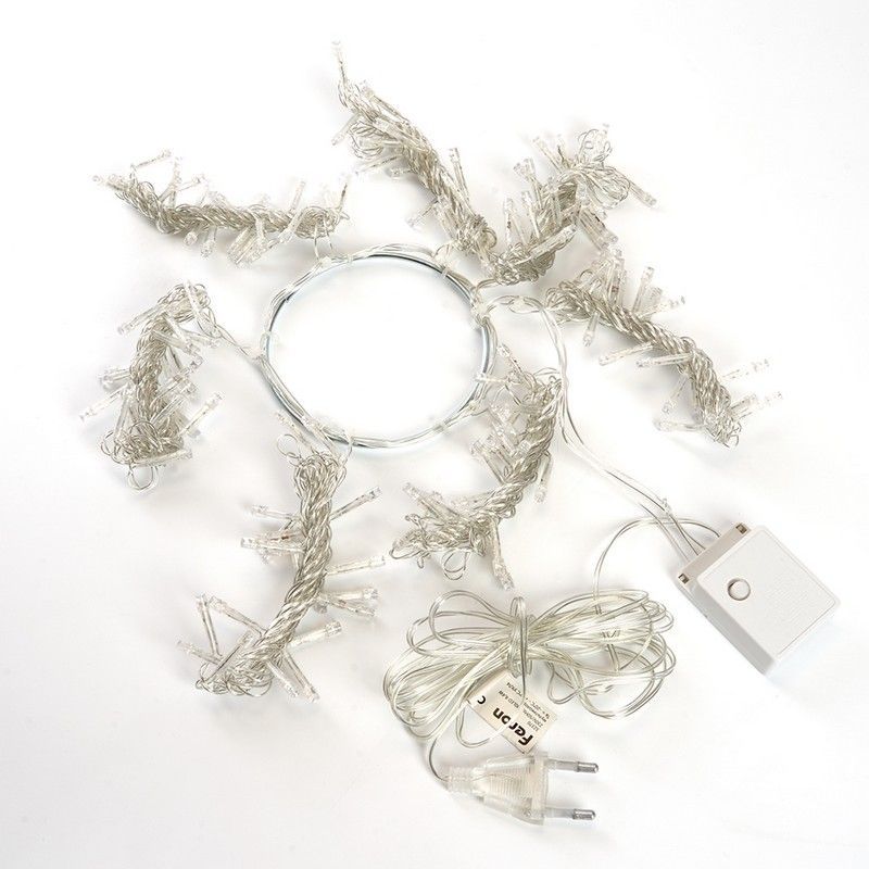 Гирлянда на елку FERON CL90, 140LED, 5000К (белый), настраивается контроллером, 2м+1,5м прозрачный шнур, расстояние между светодиодами 10см, IP20, 8,4W, от сети 230V, последовательное подключение - НЕТ