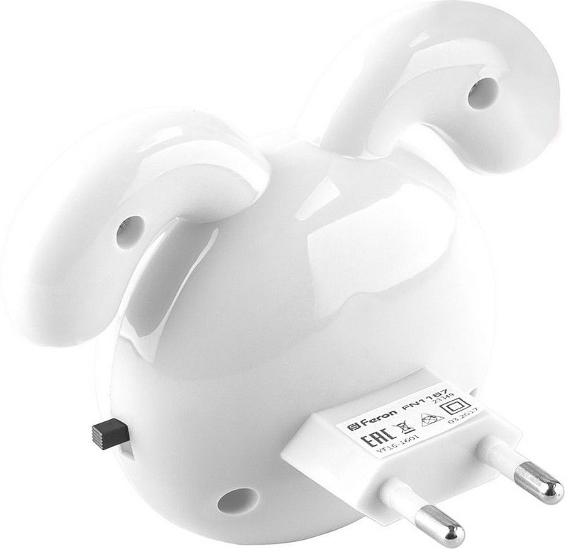 Светильник-ночник Feron FN1167 4LED 1W в розетку 220V зайчик белый 23348 по цене 151 руб. с фотографией и техническими характеристиками. Для покупки товара нажмите кнопку "Купить" и перейдите в корзину или позвоните по телефону 8 (495) 585 32 60 или 8 (800) 222 23 53.