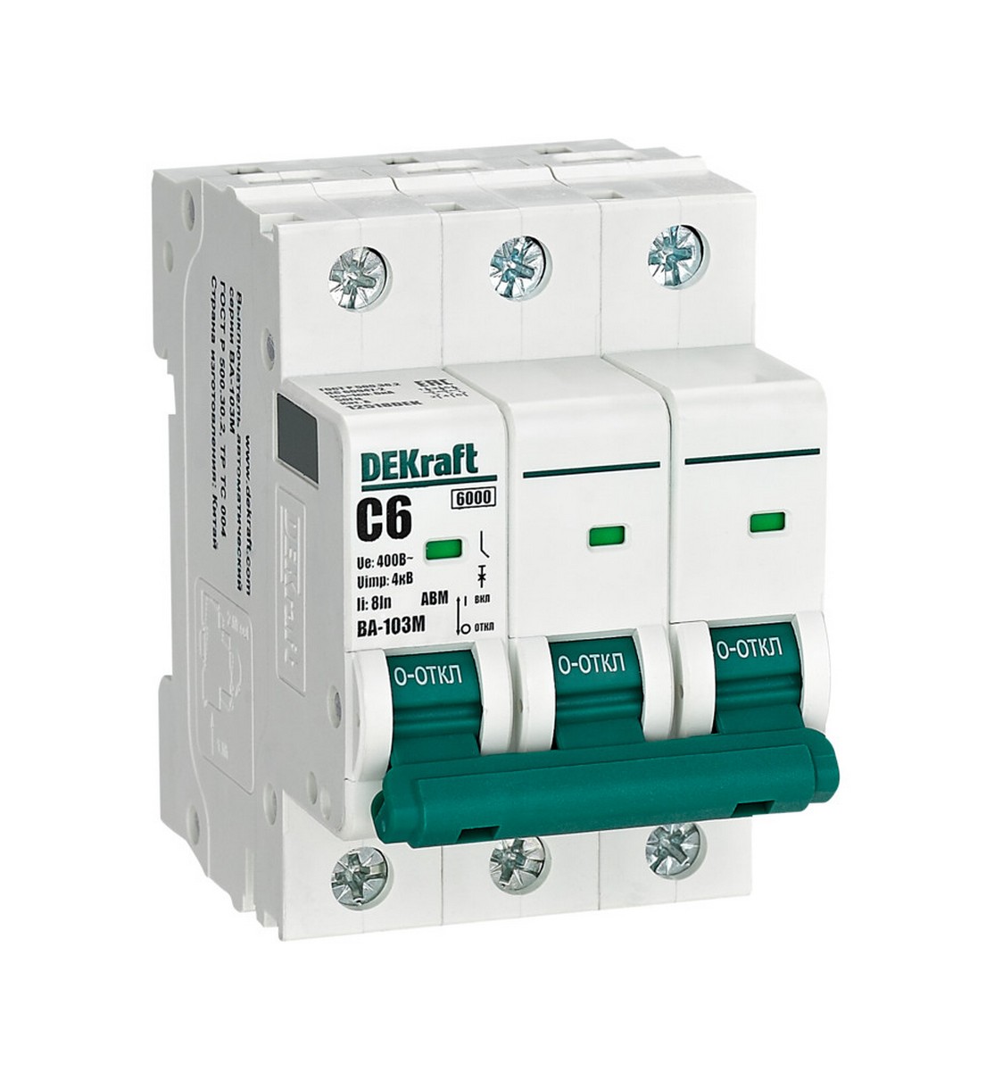 Автоматический выключатель DEKraft 3Р 6А C ВА-103 6кА (артикул 12301DEK) — это надежное решение для защиты электрических цепей. С номинальным током 6 А и отключающей способностью 6 кА, он идеально подходит для использования в качестве вводного аппарата в жилых и коммерческих помещениях.