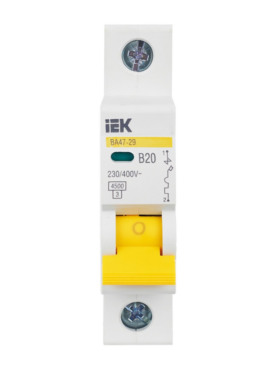 Автоматический выключатель IEK KARAT ВА47-29 1Р 20А 4,5кА (артикул MVA20-1-020-B) обеспечивает надежную защиту распределительных и групповых цепей. Подходит для различных нагрузок: для электроприборов и освещения – характеристика В, для двигателей с небольшими пусковыми токами – характеристика C, для двигателей с большими пусковыми токами – характеристика D. Рекомендуется для вводно-распределительных устройств в жилых и общественных зданиях. Номинальный ток 20А.