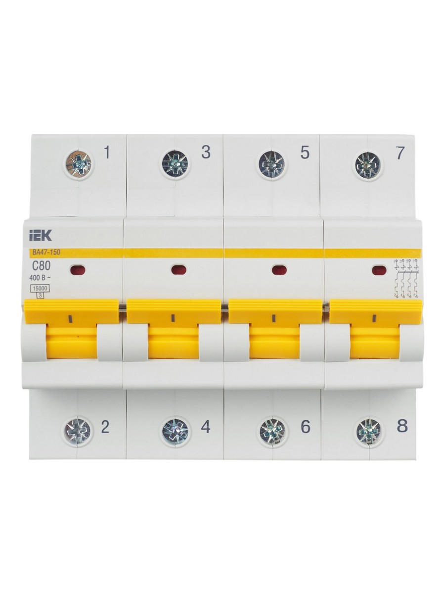 Автоматический выключатель IEK KARAT ВА47-150 4Р 80А 15кА х-ка C MVA50-4-080-C по цене 8 006 руб. с фотографией и техническими характеристиками. Для покупки товара нажмите кнопку "Купить" и перейдите в корзину или позвоните по телефону 8 (495) 585 32 60 или 8 (800) 222 23 53.