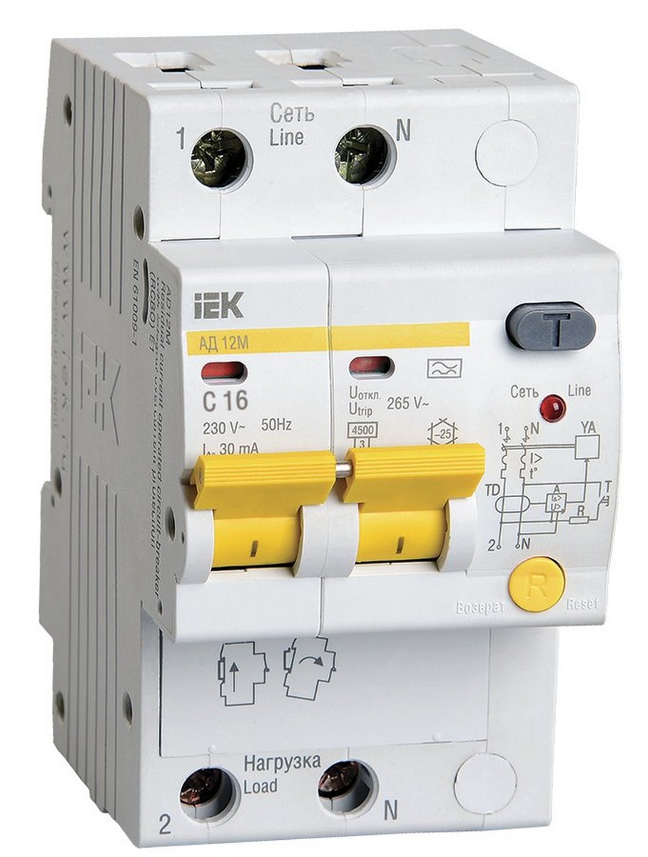 **Дифференциальный автоматический выключатель IEK KARAT АД12М 2Р 16A 30мА MAD12-2-016-C-030**