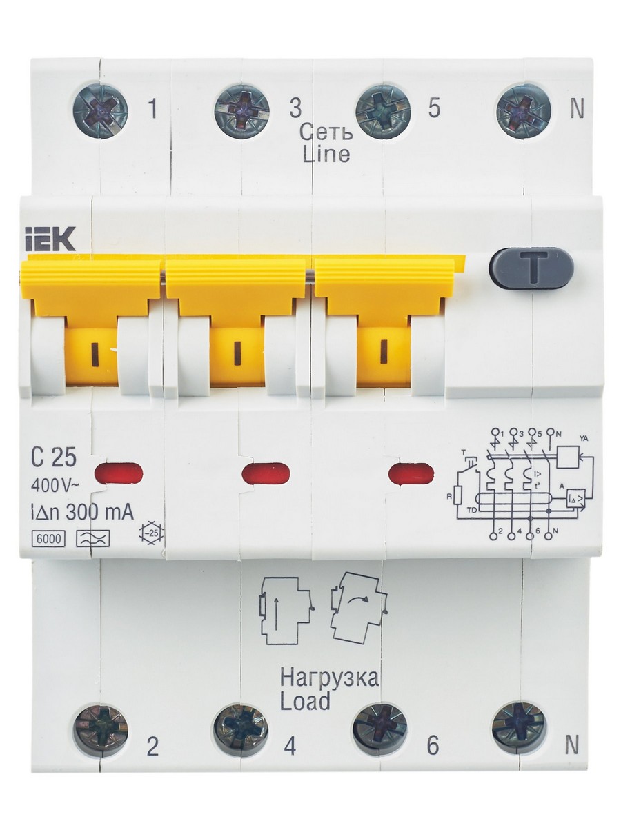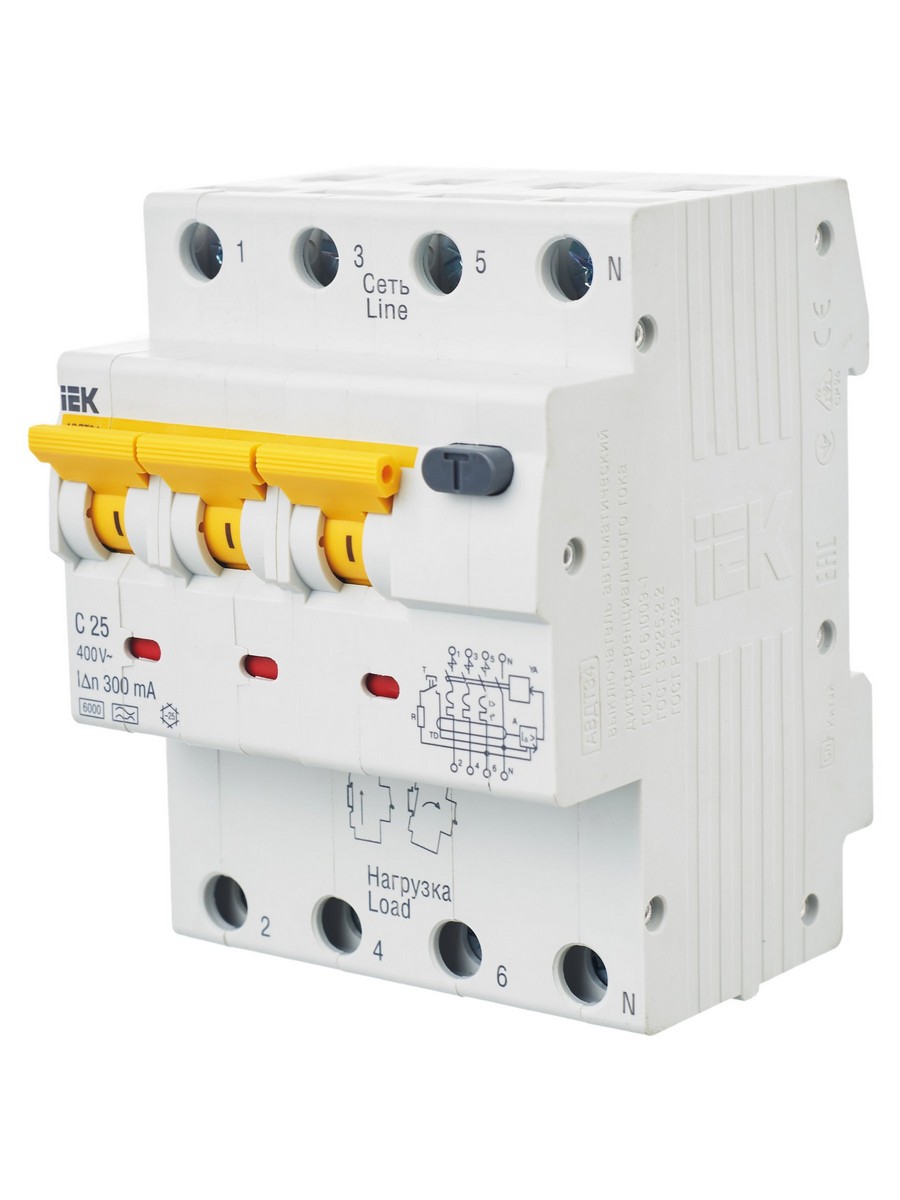 **Дифференциальный автоматический выключатель IEK KARAT АВДТ34 4P 25A 300мА (MAD22-6-025-C-300)**