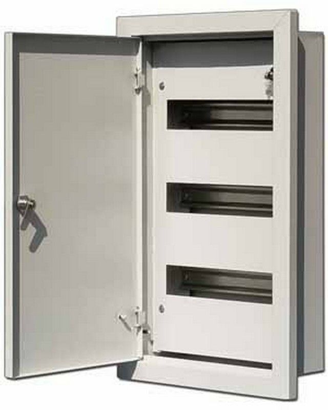 **Корпус металлический Dekraft ЩРВ-36 (артикул: 30103DEK)** — надежное решение для распределения электроэнергии. Этот встраиваемый щит обеспечивает номинальный ток до 125 А и рассчитан на 36 модулей, что делает его идеальным для использования в жилых и коммерческих объектах.