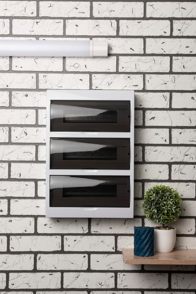 Пластиковый распределительный щит предназначен для установки модульной аппаратуры (автоматы, УЗО, таймеры). Идеален для жилых, административных и торговых помещений.